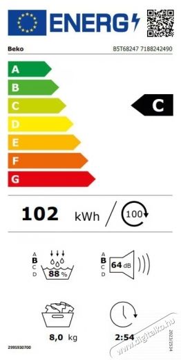 | Tulajdonság | Késleltetett indítás Megfordítható ajtó Belső világítás Buzzer Gyermekzár Automata gyűrődésgátló Szárítási szint beállítása A hátralévő szárítási idő kijelzése Box in Box Shape Drum Light |
