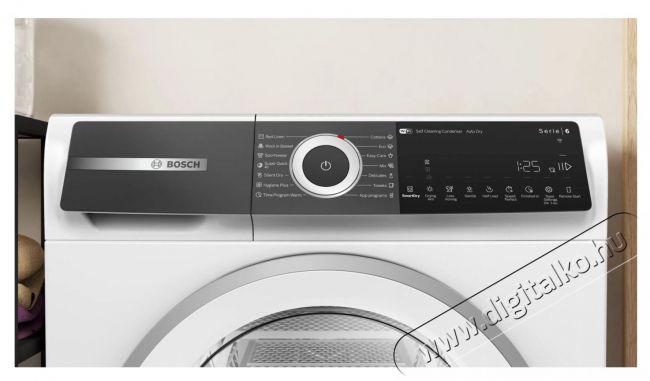 A modern BOSCH WQH246D3BY Serie 6 szárítógép funkciói növelik a hatékonyságot