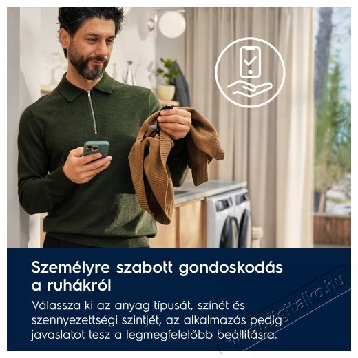 Távolról vezérelheti készülékeit a Connected funkció segítségévelCsatlakoztassa készülékét az Electrolux alkalmazáshoz, és élvezze a távvezérlés kényelmét. A Connected funkció segítségével valós idejű állapotfrissítéseket, erőforrás-takarékos tanácsokat, és olyan tippeket kaphat, amelyekkel növelheti ruhái élettartamát.