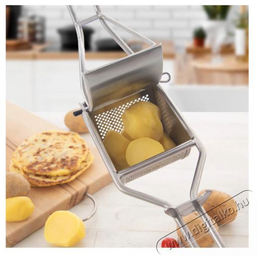 Az ORION krumplinyomó nagyszerű segítőtárs a burgonya elkészítéséhez. Lehetővé teszi a főtt burgonya könnyű áttörését. Citrusfélék, paradicsom lé préselésére, zöldségek, puha vagy főtt gyümölcsök, fokhagyma szűrésére is alkalmas. Kiváló minőségű rozsdamentes acélból készült, mosogatógépben mosható. Az ORION prés segítségével könnyedén préselheted le a főtt burgonyát és egyéb zöldségeket.