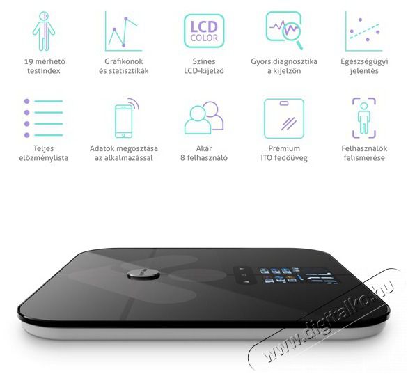 Tulajdonságok: - 19 mért testindex Saját testének megismerése még soha nem volt ilyen egyszerű. A 19 testindex, amelyek átfogó elemzését az alkalmazásban láthatja, mindent elmond, amit tudnia kell.