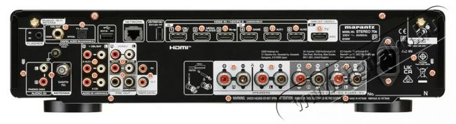 A Stereo 70s erősítő karcsú, mindössze 11 cm magas kialakítással rendelkezik, így könnyen elhelyezhető bármilyen szórakoztató rendszerben. A készülék hat HDMI bemenettel, köztük három 8K-kompatibilis porttal, valamint egy ARC-t támogató HDMI-kimenettel van felszerelve. Ez biztosítja a csatlakoztathatóságot a jelenlegi és jövőbeli video- és játékkomponensekkel.