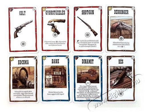 - Cél: A játékosoknak különböző szerepeket kell betölteniük (Sheriff, Bandita, vagy Renegát), és a céljaik eltérőek, ami izgalmas kihívásokat teremt.
