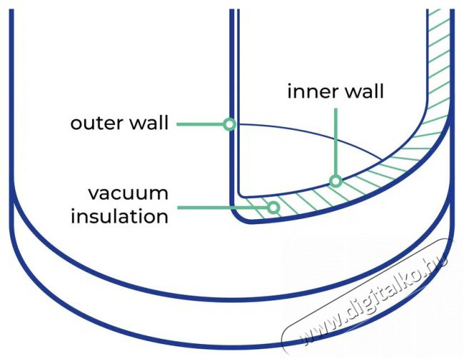 - A két fal közötti vákuum nagyobb hőállóságot garantál, mint a hagyományos termoszok