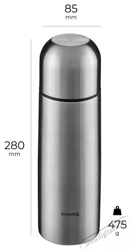 Siguro TH-D20 vákuumos termoszGyakran vagy úton és olyan termoszt keresel, amely optimális hőmérsékleten tartja a forró és a hideg italokat egyaránt? A duplafalú Siguro TH-D20 termosz 1 000 ml-es térfogattal különösen alkalmas utazásra, kiránduláshoz illetve a munkahelyre vagy iskolába is. Természetesen az ellenálló kialakítása egészségre ártalmatlan rozsdamentes acélból készült, amely nem szívja magába a szagokat vagy az ízeket, függetlenül attól, hogy hányszor töltöd meg a termoszt, vagy hogy mit töltesz bele. Ez a termosz télen-nyáron remek társ lesz - élvezd a forró teát vagy kávét síelés közben, nyáron pedig megtöltheted a termoszt vízzel vagy jeges üdítővel a túrázáshoz.