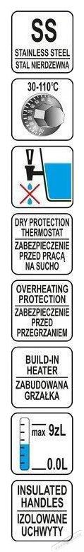 A(z) YATO Főző termosz, 2000 W, 9 l gasztro edény legfontosabb jellemzői