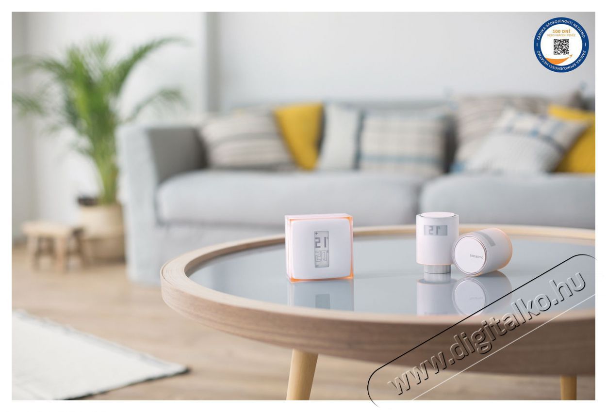 Netatmo Smart ThermostatInnovatív termosztátA Netatmo Smart Thermostat távolról szabályozható fűtéssel csökkenti a háztartás energiafogyasztását. A kifinomult tervezésnek köszönhetően használhatja okostelefonokkal és más okoskészülékekkel összekötve is. Bárhol és bármikor ellenőrizheti és módosíthatja a fűtést az okostelefonjáról, tabletről vagy laptopról ( iOS , Android , Windows Phone ).