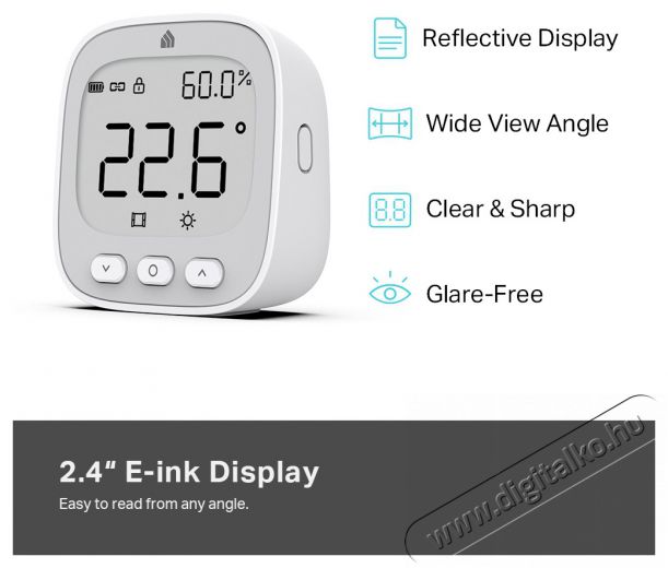 - Az aktuális értékek egy e-ink kijelzőről olvashatók le