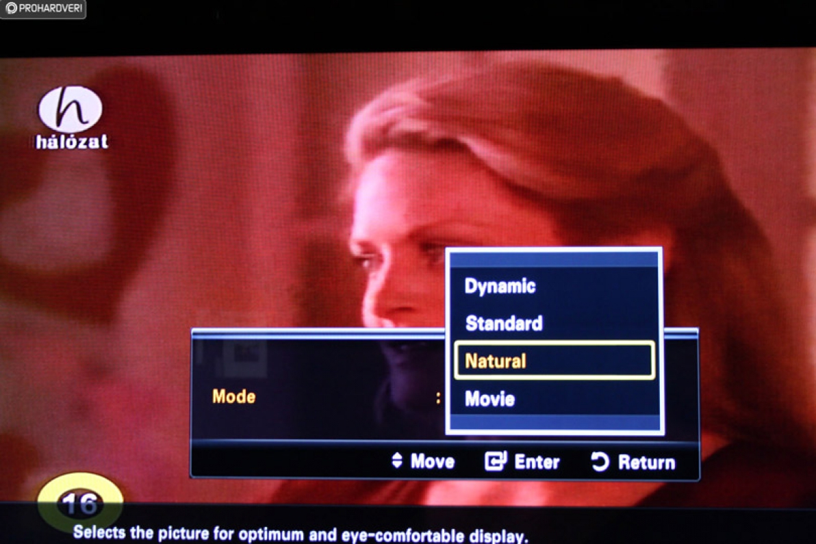 A Samsung az előzetes beállítások tekintetében sosem tartozott az éltanulók közé. Most is csak négyféle profil közüli választást tesznek lehetővé. A dinamikust, mint olyat, azonnal kilőhetjük szokás szerint. A fényerő miatt egy vallatószobában sem kéne szégyenkeznie, a színek túlszaturáltak, természetellenesek, nem jó ez, nagyon nem jó. A Normál és a Természetes is erős közepes lehet csak, ráadásul ez utóbbi nem aktiválható akkor, ha számítógéppel kötjük össze a tévét, úgyhogy az alábbi ábrák között ezért nem kapott ez az opció helyet. A Mozi opció bizonyult megint a legjobb választásnak, de ezen már nem is lepődtünk meg nagyon.