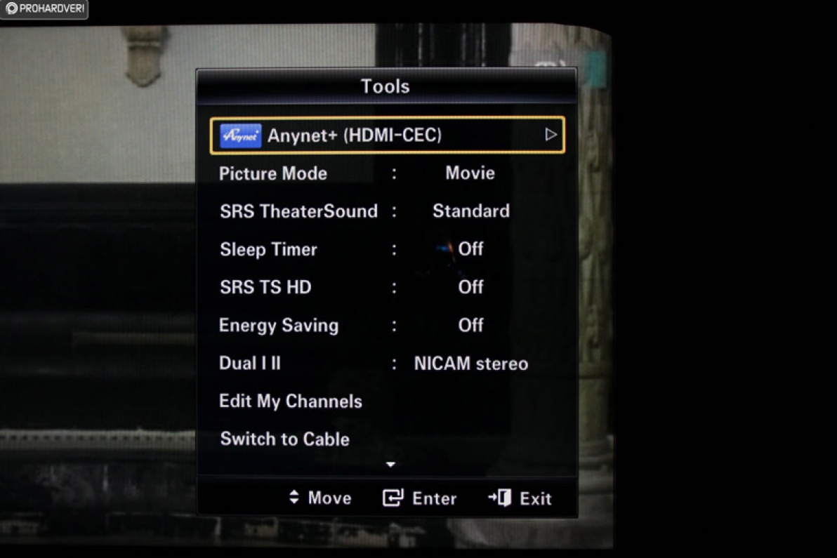 A menürendszer nagy újdonságot nem fog okozni senkinek, aki már látott mostanában Samsung tévét. Bal oldalt a fő menüpontok kaptak helyet, és ezek alatt terülnek el maximum két lépcsőfok mélységben az egyéb opciók. Gyakorlatilag tehát minden elérhető két ugrásból, világos és átlátható rendszer, ráadásul piktogramok is segítik a felhasználó dolgát. Az elérési út az esetek túlnyomó többségében logikus, nagyjából ott van minden, ahol lennie kell. Ez elsőre nem tűnik túl fontos tényezőnek, ám a jelentőségére csak akkor figyelünk fel, ha egy elbaltázott modellbe futunk bele.