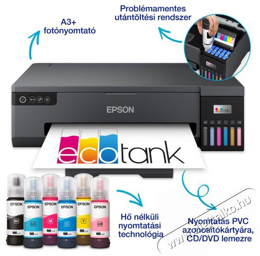 | Jellemzők | CD/DVD Nyomtatás, Keret nélküli nyomtatás, Manuális kétoldalas nyomtatás (duplex), Tartályrendszer |