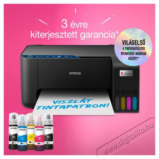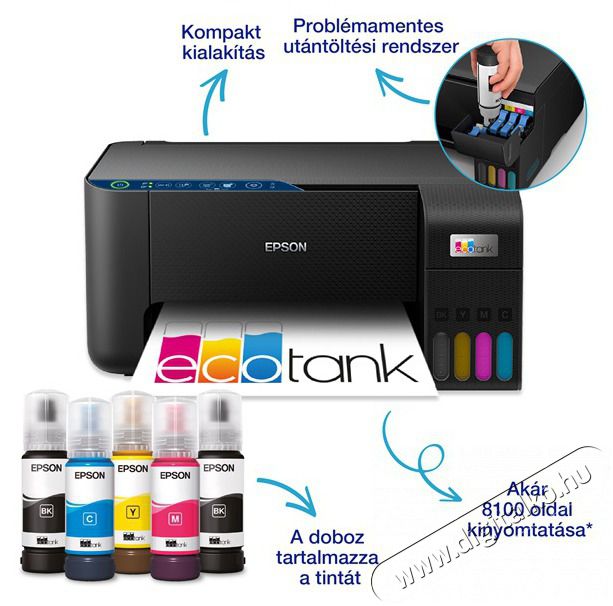 Takarítsa meg a tintaköltségek akár 90%-át az EcoTank tintatartályos nyomtatóval-     Stresszmentes, kényelmes nyomtatás akár 3 évre elegendő tintával a csomagban Takarítson meg akár 90%-ot a nyomtatási költségeken az újratölthető tintatartályokkal
