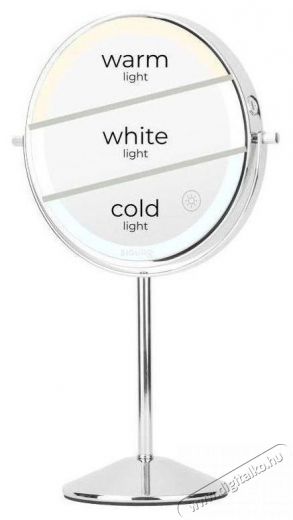 Siguro Pure Beauty Nola M390SU sminktükör A bőrápolás, a sminkelés és más kozmetikai kezelések egyik fő feltétele nemcsak a gyakorlott kezek, hanem a minőségi megvilágítás is. A Siguro Pure Beauty Nola M390SU kétoldalas kozmetikai tükör állítható LED háttérvilágítással a legapróbb részletekig megfelel az elvárásoknak. Az 1× és 10× nagyítással rendelkező nagy látóterekkel, a tükörfelület 360°-os elforgathatóságával és a gyönyörű rozsdamentes acél kivitelezéssel ez a kozmetikai tükör a kozmetikai asztalod nélkülözhetetlen részévé válik, ahol tökéletesen fog kinézni. Az áramellátásról egy beépített akkumulátor gondoskodik, amely2 órás üzemidővel rendelkezik, és amelyet a mellékelt USB-C kábellel kényelmesen feltölthetsz.