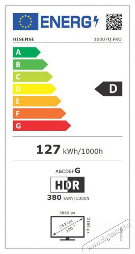 | Bekapcsolt üzemmód energiaigénye HDR esetén | 380 kWh/1000 óra |