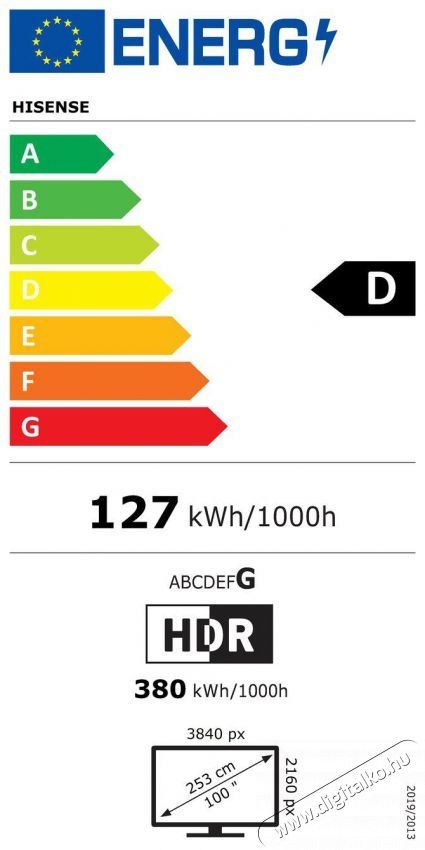 | Bekapcsolt üzemmód energiaigénye HDR esetén | 380 kWh/1000 óra |