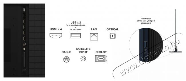 | Interfész | 2 x USB 1 x RJ-45 CI+ slot 1 x HDCP 2.2 1 x Digital Optical Out 4 x HDMI 2.1 |