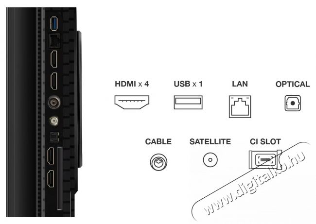 | Interfész | 1 x USB 1 x RJ-45 CI+ slot 1 x HDCP 2.2 1 x Digital Optical Out 4 x HDMI 2.1 |