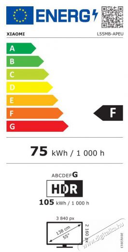 | Bekapcsolt üzemmód energiaigénye HDR esetén | 105 kWh/1000 óra |