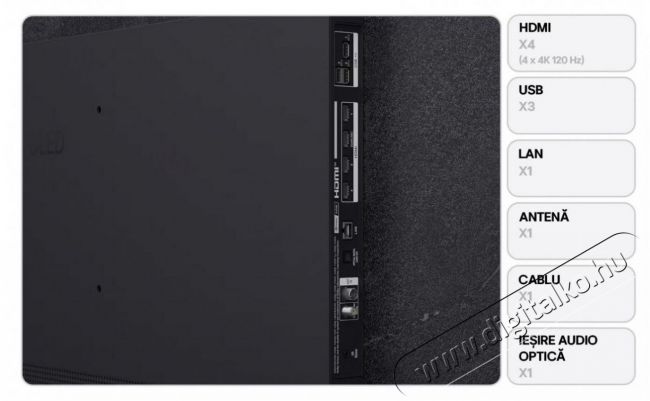 | Interfész | 1 x RJ-45 3 x USB CI+ slot 1 x Digital Optical Out 4 x HDMI 2.1 |