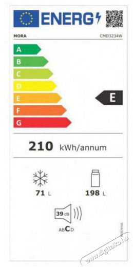 | Hűtőszekrény éves energiafogyasztása | 285 kWh/annum |