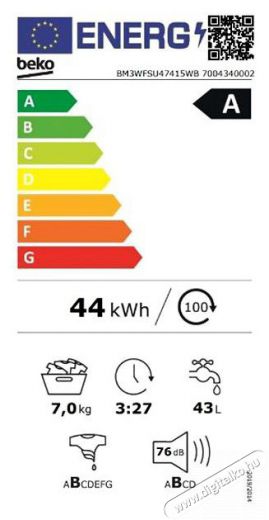 - BEKO BM3WFFSU47415WB mosógép teljes súlya: 65 kg