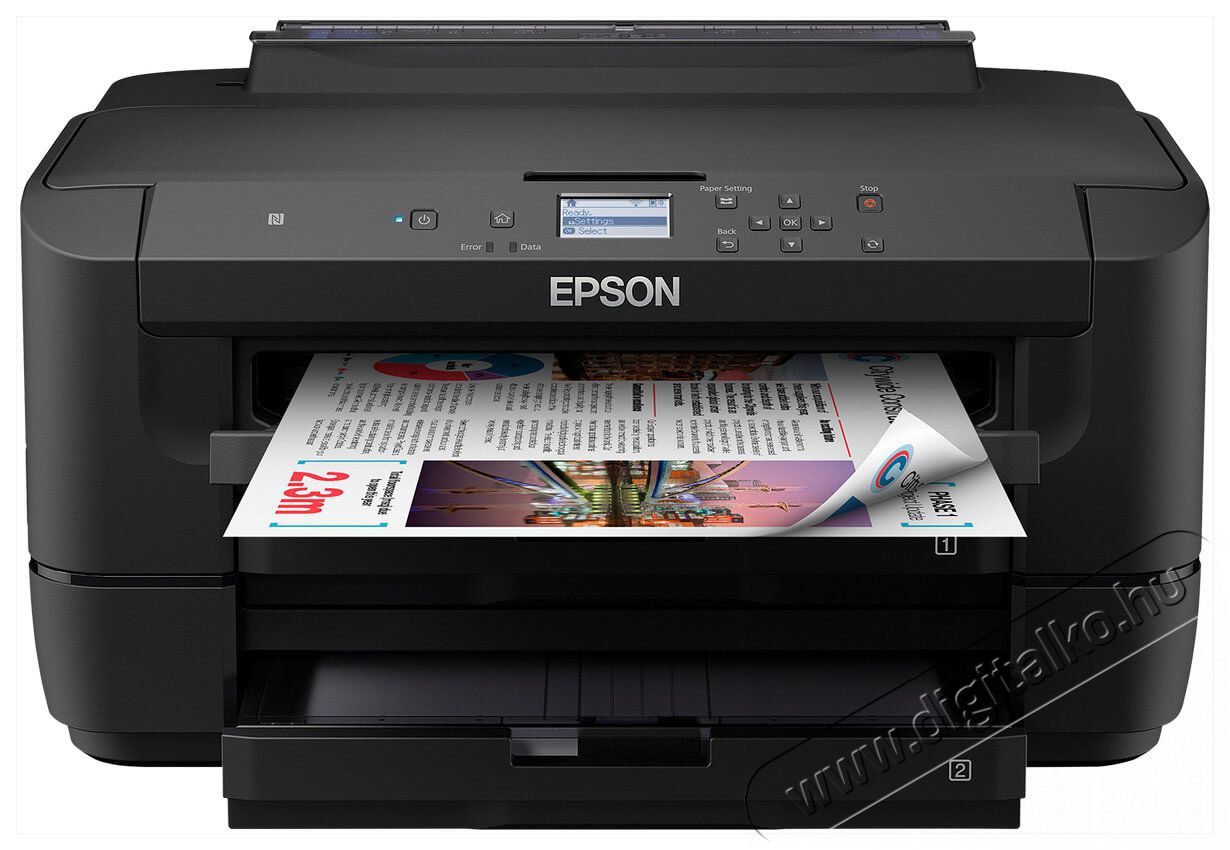 Nyomtasson gyorsan, professzionális eredményekkel, túlzott költségek nélkül a kiemelkedő minőségű WF-7210DTW nyomtatóval. A munkafolyamatok gördülékenyebbé és hatékonyabbá válnak a nagy sebességű nyomtatásnak és a kettős lapadagoló tálcának köszönhetően. A nyomtató egészen biztosan lenyűgözi felhasználóját: a színenként cserélhető tintapatronoknak köszönhetően visszafogott költségekkel működik, a rugalmas, vezeték nélküli megoldások tárháza pedig lehetővé teszi, hogy Ön onnan és úgy dolgozhasson, ahonnan és ahogyan csak szeretne.