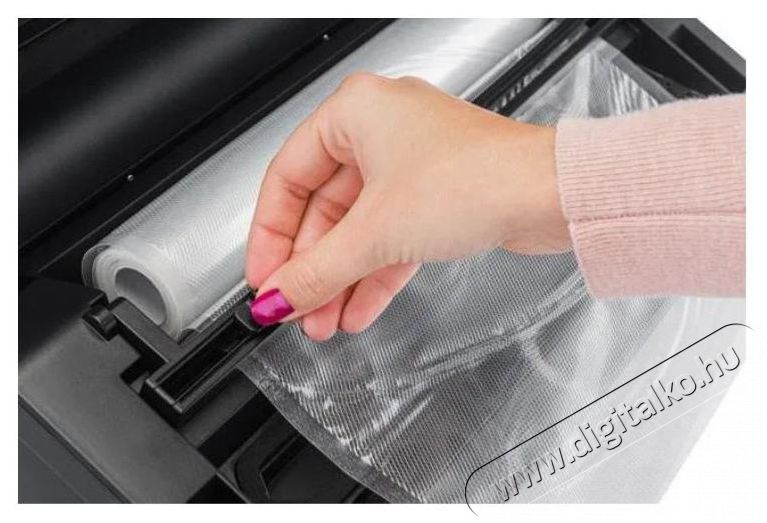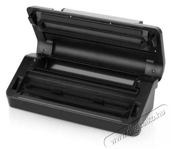 Vákuumozó gép - élelmiszerekhez, fóliahegesztő, automata, hegesztési vastagság 2,5 mm, hegesztés maximális szélessége 30 cm, 120 W teljesítmény, 0,8 bar szívó teljesítmény, 0,4 l/m szívóerő, 85 dB zajszint, LED-jelző, olvadóbiztosíték és alkalmas sous vide-hoz, 1 fólia a csomagban, vákuumtömlő, vákuum edény, vágókés, zacskók a csomag része, mérete 14,5 × 41 × 18 cm (Ma×Sz×Mé), tömege 340 g.