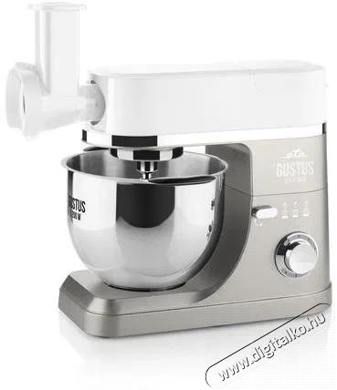 ETA Gustus IV Maximus 4128 90030 Könnyítsd meg az ételek elkészítését, és éld ki a szenvedélyed és lelkesedésed az ételek iránt az új ETA Gustus IV Maximus 4128 90030 konyhai robotgéppel. 1200 W-os motorral rendelkezik, amelynek köszönhetően gyorsan feldolgozza még a legigényesebb alapanyagokat is. A motor teljesítményét könnyedén tudjuk állítani 6 lehetséges sebességi fokozatban, így olyan gyorsaságot választunk, amire éppen szükség van. Bolygómozgásának hála, amikor is az alapanyagok keverése közben a robotfej és a keverőfej egymással ellenkező irányban mozog, az egyes összetevők tökéletes keveréke garantált. Annak érdekében, hogy a konyhai robotgéppel egyszerűen és hatékonyan tudjunk tésztát készíteni, rendelkezik egy minőséges rozsdamentes acél tállal, melynek térfogata 5,5 l, amely tökéletesen megfelel minden többszemélyes háztartás számára. A remek ETA konyhai robotgép megjelenését fehér és ezüst szín dobja fel.