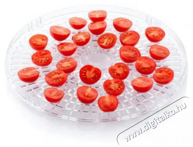 Aszalógép zöldség és gyümölcs szárításához - 380 W teljesítmény segítségével szárítható gomba, fűszernövények, tea, virágok, 5 szárítólemez, szárítólemez átmérője 28,8 cm, kézi vezérlés, időzítő, hőmérséklet szabályozás 35 - 70 °C, átlátszó fedél, túlmelegedés elleni védelem, kijelző, műanyag szárítólemezek, aszalógép anyaga műanyag, mérete 23 × 29,5 × 29,5 cm (Ma×Sz×Mé).