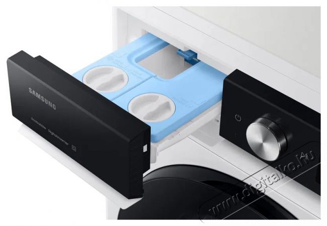 Különálló rekeszek, automatikus adagolás A mosógép maga gondoskodik arról, hogy minden alkalommal a megfelelő mennyiségű mosószert és lágyítószert adagolja, az ötletes Auto Dispense funkció segítségével, amely minimális erőfeszítéssel tökéletes mosási eredményt biztosít. Emellett jobb rálátásod lesz az egyes fiókok tartalmára, és mindkét rekeszbe tölthetsz mosószert, így nem kell minden mosás után automatikusan újratöltened őket.