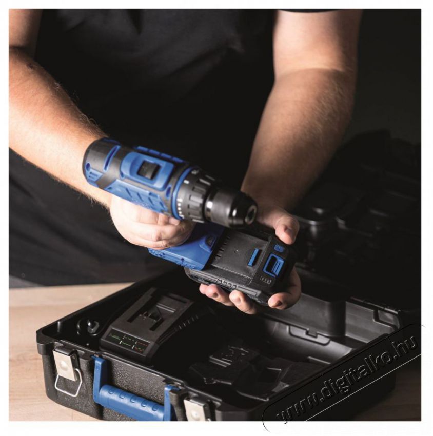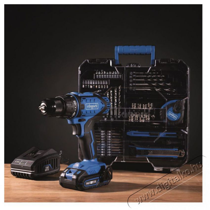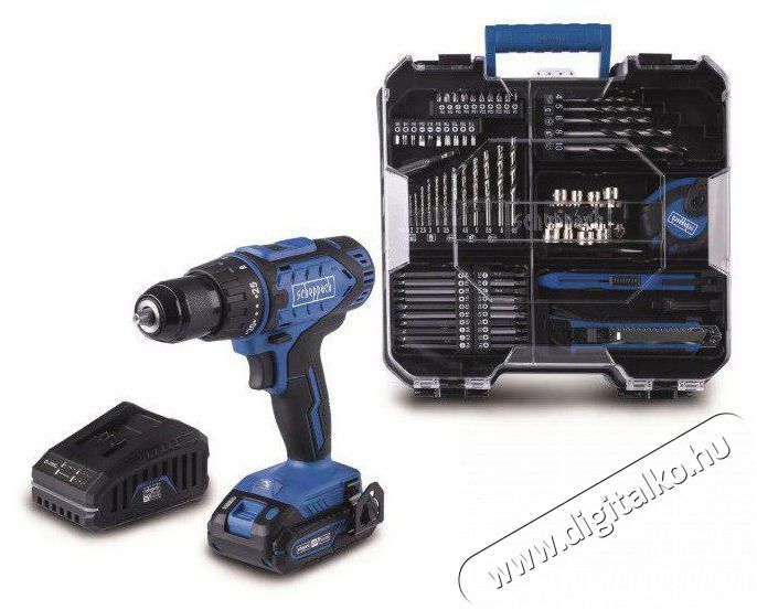 fúró-csavarozót és 74 részes tartozékkészletet tartalmaz, könnyedén megbirkózol minden barkács és professzionális projekttel. A kétfokozatú sebességváltóval és maximum 50 Nm nyomatékkal rendelkező csavarozó tökéletes csavarok meghúzásához és lazításához, valamint fúráshoz fába, fémbe vagy műanyagba. A 25 előre beállított nyomatékfokozatnak köszönhetően a csavarozási teljesítményt pontosan az elvégzendő munka nehézségéhez igazíthatod. A fúró-csavarozó kényelmes, ergonomikus, puha bevonatú markolattal, munka LED világítással és praktikus övcsipesszel rendelkezik, amellyel az eszközt az övedre rögzítheted. A munkaeszközök szerszám nélküli cseréjét a 1,5-13 mm-es tartományú gyorstokmány teszi lehetővé.A tartozékkészlet strapabíró hordozókofferben található, amely helytakarékos és megkönnyíti a szállítást. A csomag tartalmaz egy töltőt és egy 20V-os Li-Ion akkumulátort a Scheppach IXES sorozatból, 2 Ah kapacitással.