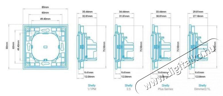 Kapcsoló - használható világítás vezérlésére, kapcsolat módja WiFi 2,4 GHz, Android és iOS kompatibilis, gyártó saját alkalmazása, önállóan működik, nyílt rendszer, max. feszültség 230 V, mérete 70 × 70 × 10 mm (Ma×Sz×Mé).