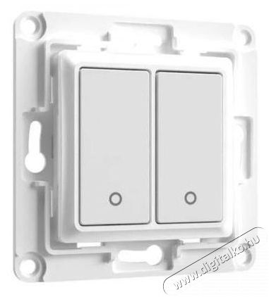 Kapcsoló - használható világítás vezérlésére, kapcsolat módja WiFi 2,4 GHz, Android és iOS kompatibilis, gyártó saját alkalmazása, önállóan működik, nyílt rendszer, max. feszültség 230 V, mérete 70 × 70 × 10 mm (Ma×Sz×Mé).
