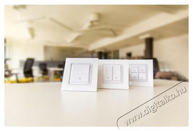 Kapcsoló - használható világítás vezérlésére, kapcsolat módja WiFi 2,4 GHz, Android és iOS kompatibilis, gyártó saját alkalmazása, önállóan működik, nyílt rendszer, mérete 70 × 70 × 10 mm (Ma×Sz×Mé).
