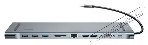 Multifunkcionális 11in1 Type-C csatlakozású dokkoló állomás széleskörű csatlakozással ellátva.
