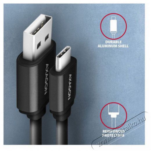 Termék neve Axagon Data and charging USB 2.0 cable length 1.1 m. 3A. Black twisted. USB kábel 1,1 M USB A USB C Fekete