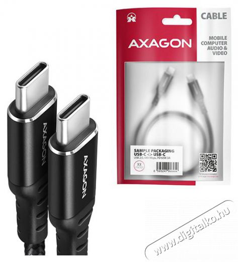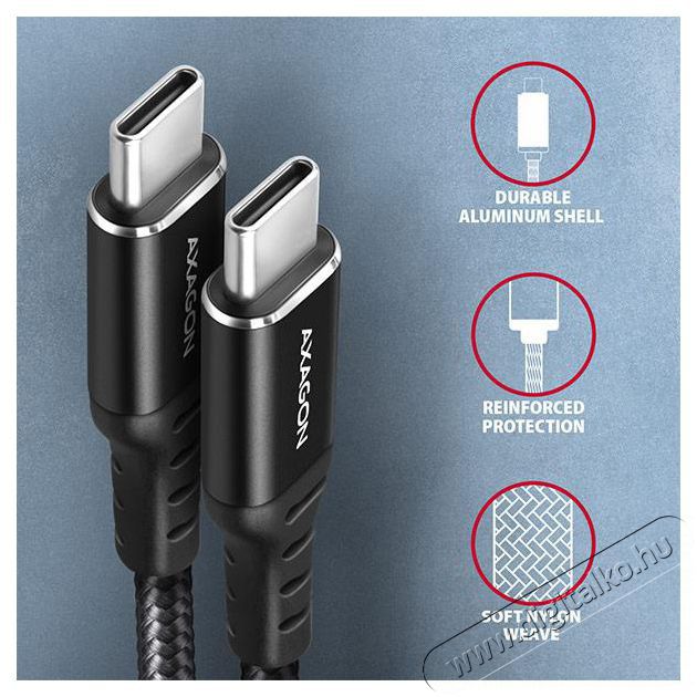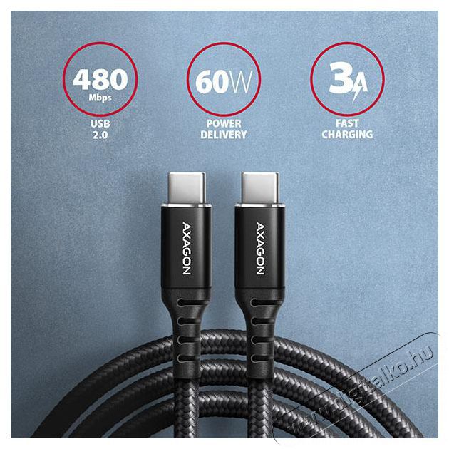Termék neve Axagon Data and charging USB 2.0 cable 1.5 m long. PD 60W, 3A. Black braided. USB kábel 1,5 M USB C Fekete