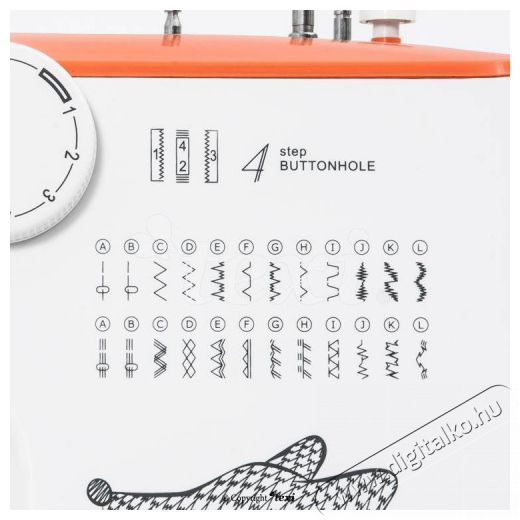 Funkciók Auto tűbefűző, Dupla tűs varrás, Orsótekercselés, Overlock öltés, Öltéshossz beállítás, Öltésszélesség beállítás, Szabad kar, Világítás
