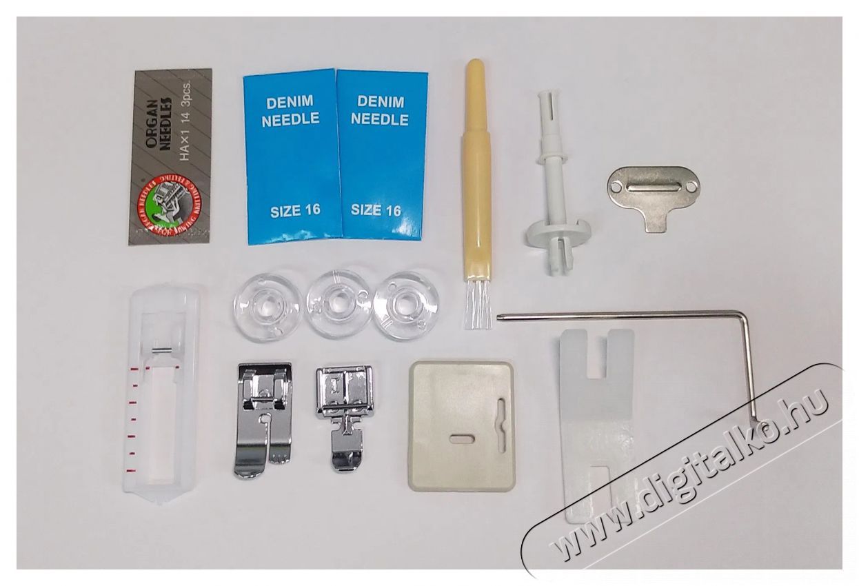 | Funkciók | Auto tűbefűző, Dupla tűs varrás, Orsótekercselés, Overlock öltés, Öltéshossz beállítás, Öltésszélesség beállítás, Szabad kar, Világítás |