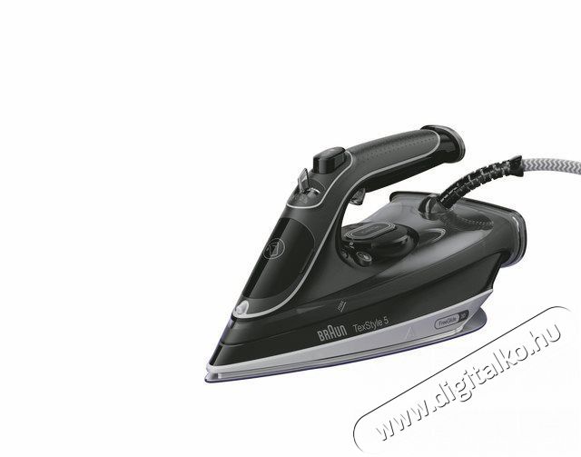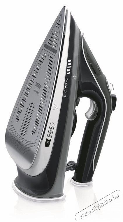 Braun TexStyle 5 SI5188.BK vasalóA TexStyle 5 sorozat Braun TexStyle 5 SI5188.BK vasalója egyszerűbb vasalást tesz lehetővé, kiváló eredménnyel. Az egyedülálló, felfelé ívelt 3D FreeGlide vasalófelületnek köszönhetően minden irányban könnyedén vasalhatod a szöveteket. A precíziós hegynek és az extra csúszós Eloxal Plus vasalófelületnek köszönhetően még a rakoncátlan gyűrődések is fellazulnak. A Braun vasaló akár 230 g/perces gőzteljesítménnyel bír, gyorsan felmelegszik és 330 ml űrtartalmú víztartállyal rendelkezik. A Braun TexStyle 5 SI5188.BK vasaló ergonomikusan kialakított nyitott fogantyúval van ellátva.
