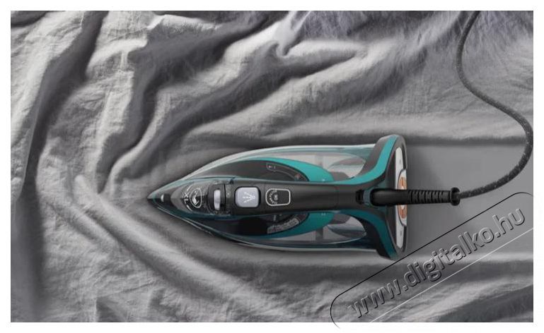 Vasaló - gőzölős, ruhához, 3000 W teljesítmény, spriccelés, gyorsmelegítés és függőleges gőzölés, csapvíz használata, vízkő jelzés és vízkőtelenítés, 350 ml-es tartály, 55 g/perc gőzkibocsátás, 250 g/perc gőzlövet, durilium vasalótalp, kábel hossza 2,5 m, fekete és kék kivitel.