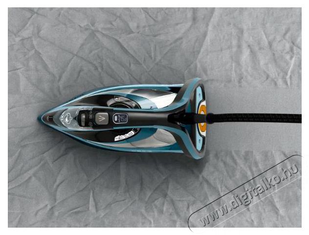 Vasaló - gőzölős, ruhához, 3200 W teljesítmény, spriccelés, gyorsmelegítés és függőleges gőzölés, csapvíz használata és vízkőtelenítés, 350 ml-es tartály, 60 g/perc gőzkibocsátás, 300 g/perc gőzlövet, durilium vasalótalp, kábel hossza 2,5 m, fekete és kék kivitel.