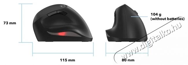 Az Eternico Wireless 2.4 GHz Vertical Mouse MV200 egér összesen 6 gombbal rendelkezik, beleértve a középső gomb funkciójú kereket, az előre/hátra gombokat és a DPI váltást, amelyet három szinten állíthatsz be - 800, 1200 és 1600.10 perc inaktivitás után az egér automatikusan alvó üzemmódba kapcsol. Amikor bekapcsol vagy alvásból ébred, az egér pirosan villog. Valamint akkor is villog, ha figyelmeztet az akkumulátor lemerülésére.