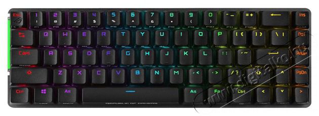 ROG Falchion Ace 65%-os kompakt játékbillentyűzet, előkenetezett ROG NX mechanikus kapcsolókkal, ROG kapcsolóstabilizátorral, PBT doubleshot billentyűzettel, hangtompító habbal, interaktív érintőpanellel, kettős Type-C porttal, három billentyűzet-döntési szöggel és burkolattal