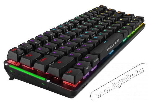 A ROG csapatának célja egy kompromisszumok nélküli kompakt billentyűzet kialakítása volt, mesterien beépítve a nyíl- és navigációs billentyűket a 65%-os billentyűzetkiosztásba. A mindössze 306 mm hosszú ROG Falchion Ace pedig majdnem akkora, mint egy 60%-os billentyűzet. A normál billentyűzet összes funkcióját biztosítja anélkül, hogy sok helyet foglalna az asztalon.