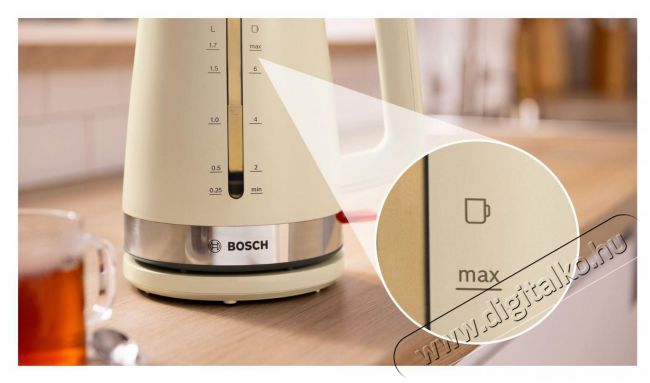 Rozsdamentes acél borítása modern megjelenést kölcsönöz a konyhának, míg a 2400 wattos teljesítménynek és a 1,7 literes űrtartalomnak köszönhetően gyors és hatékony működést biztosít. Rejtett fűtőszála, kivehető vízkőszűrője és biztonsági funkciói gondoskodnak arról, hogy minden egyes használat élmény legyen – megbízható, stílusos és időtálló megoldás a Bosch minőség jegyében.