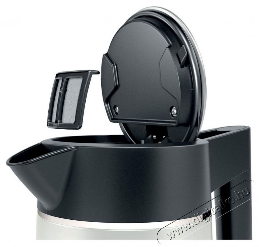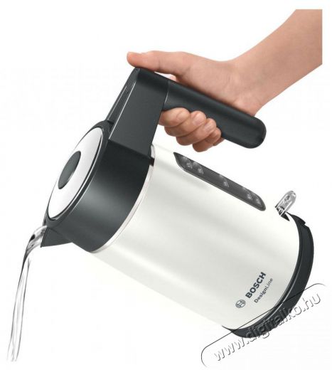 Eme 1,7 l-es Bosch Vízforraló lehetővé teszi a tea és a kávé gyors és egyszerű elkészítését. A vízforralót rozsdamentes acélból gyártották, nem tartalmaz , nem kívánatos anyagokat, amelyek károsak lennének az egészségre, és nem hajlamos szagok vagy ízek felszívására. Kivehető szűrő tartja vissza a szennyeződéseket kiöntéskor. A fokozott biztonságért olyan berendezés felel, mint termikus biztosíték. A fűtőspirál az alsó rész alatt van elrejtve, így védve van a vízkő felhalmozódásától.