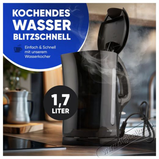Az akkumulátoros technológiának köszönhetően a Clatronic vízforraló tökéletes konyhai segítő a háztartásban vagy az irodában A vízforraló 1,7 literes űrtartalommal rendelkezik. A töltési mennyiséget a két külső vízszintjelző segítségével olvashatja le.