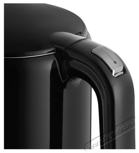 A legapróbb részletekig finomhangolt A készülék kettős fala a Cool Touch hatásnak köszönhetően mindig hűvös tapintású. A vízforraló belső részei kiváló minőségű rozsdamentes acéllal vannak bevonva, amely kiváló hővezető képességgel rendelkezik, és nem vonzza a szennyeződéseket vagy a vízkövet. Külső felülete fényes műanyagból készült, amely nagyon elegánsan mutat. Az egész megjelenést színes ikonokkal ellátott kijelző egészíti ki.