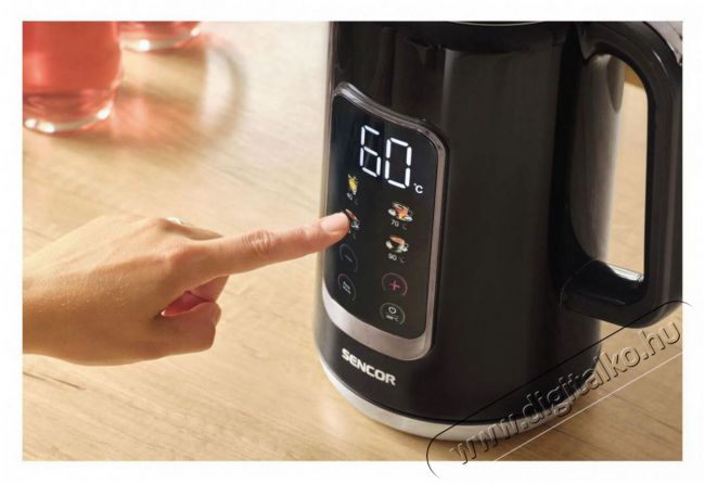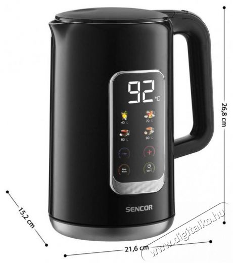 Sencor SWK 0951BK elektromos vízforraló egyedi, színes kijelzővel A modern, fekete köntösbe bújtatott Sencor SWK 0951BK vízforralóba szó szerint bele fogsz szeretni. Pillanatok alatt felforralja a vizet (2200 W), és a hőszabályozásnak köszönhetően előre beállíthatod a kívánt hőmérsékletet. Kétszeresen megerősített felülete gondoskodik róla, hogy érintése mindig hűvös legyen. Nagyon egyszerű érintésvezérléssel és nagy, innovatív LED kijelzővel van ellátva, amelyet színes ikonok borítanak. Értékelni fogod a praktikus Keep Warm funkciót is, amellyel a vízforraló belsejében lévő vizet melegen tarthatod, valamint a maximális teljesítményt nyújtó gombot.